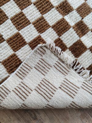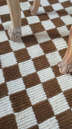 Handwoven Wool Moroccan Brown White Home And Living Room Checkered Rug