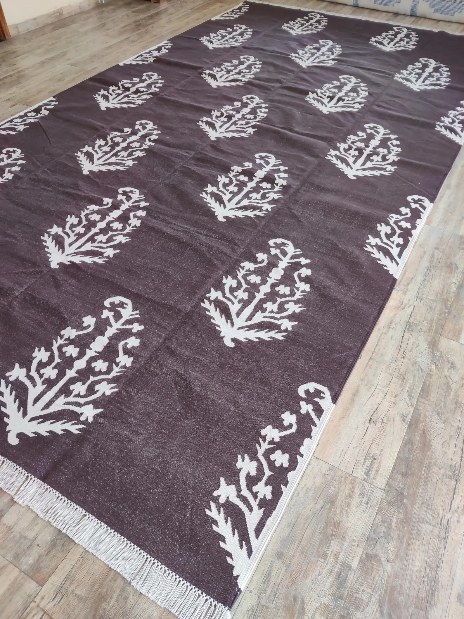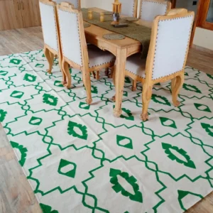 Green Cotton Flat Weave Rug, Home And Living Room Decor