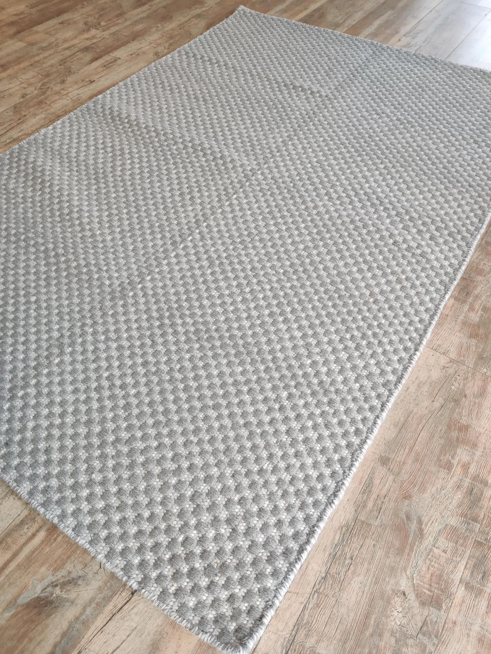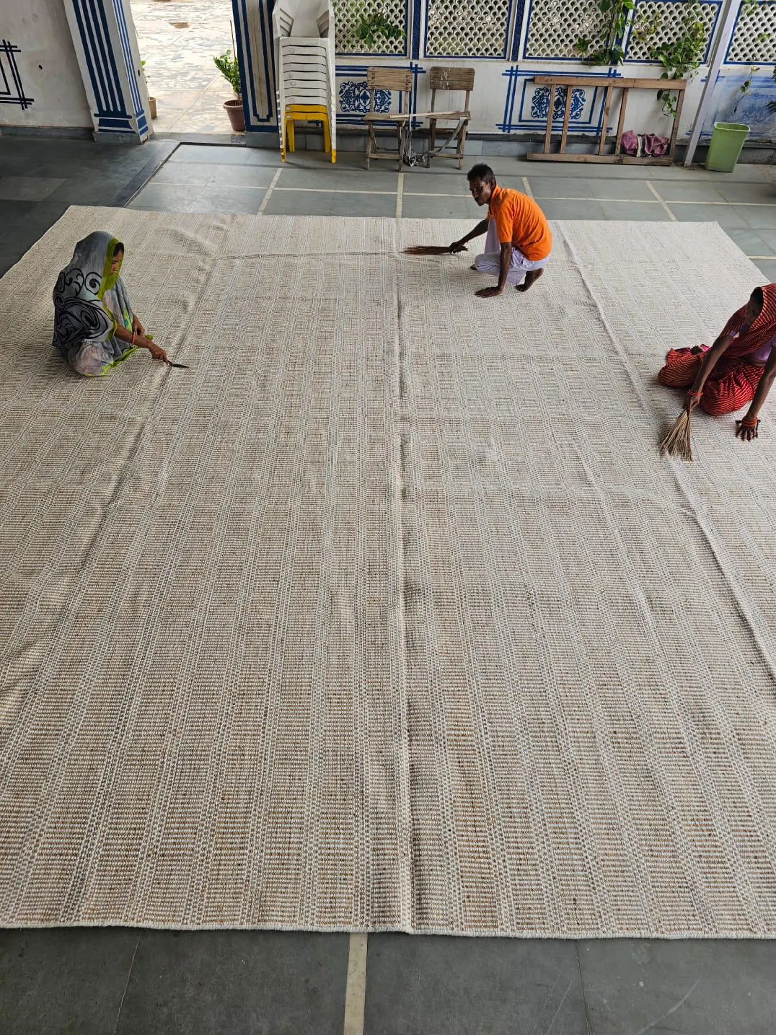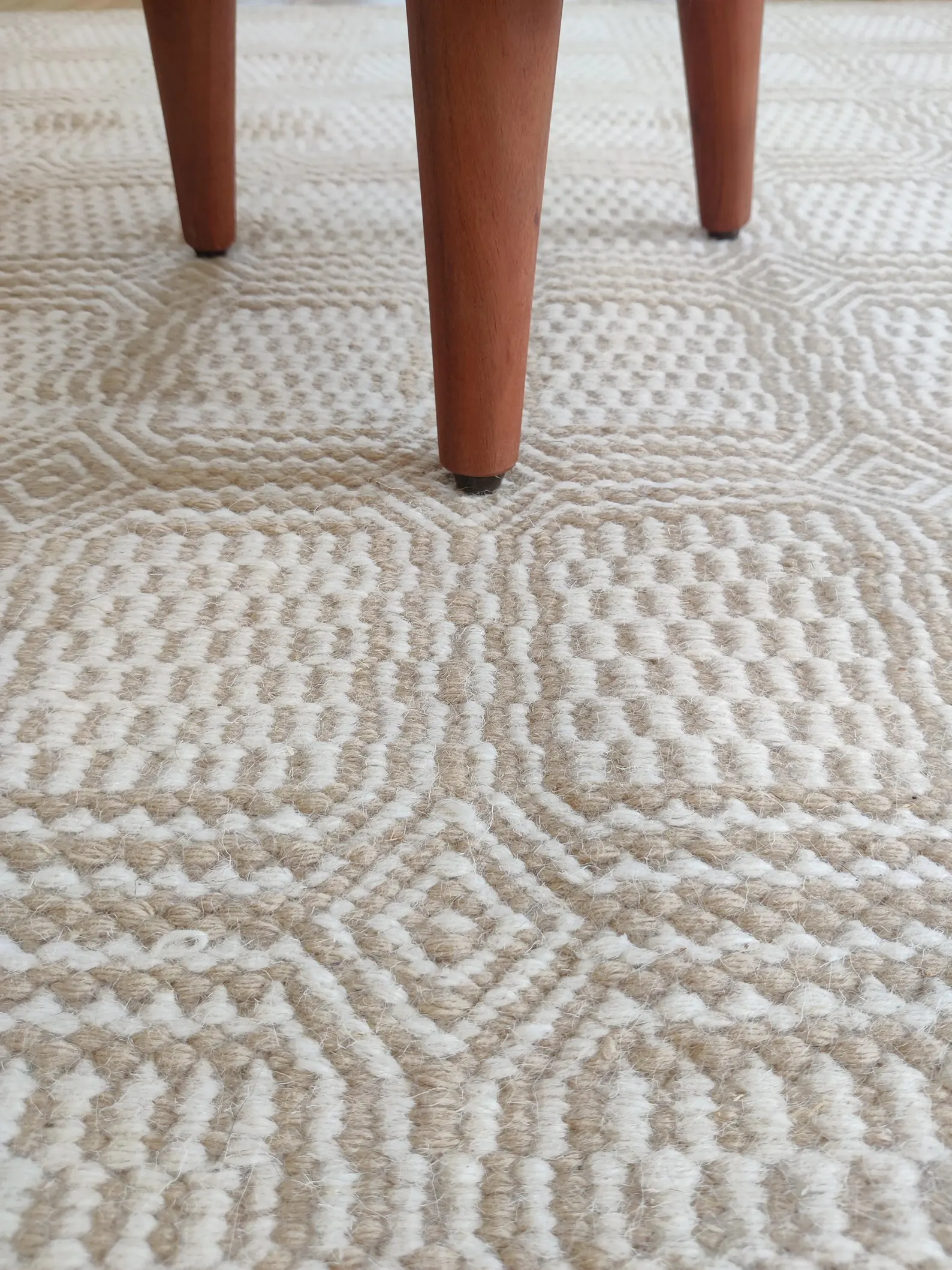 Handmade Ecru & White Wool Rug: Flatweave Rug