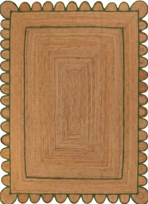 Jute Braided Floor Area Rug, Scalloped Rug