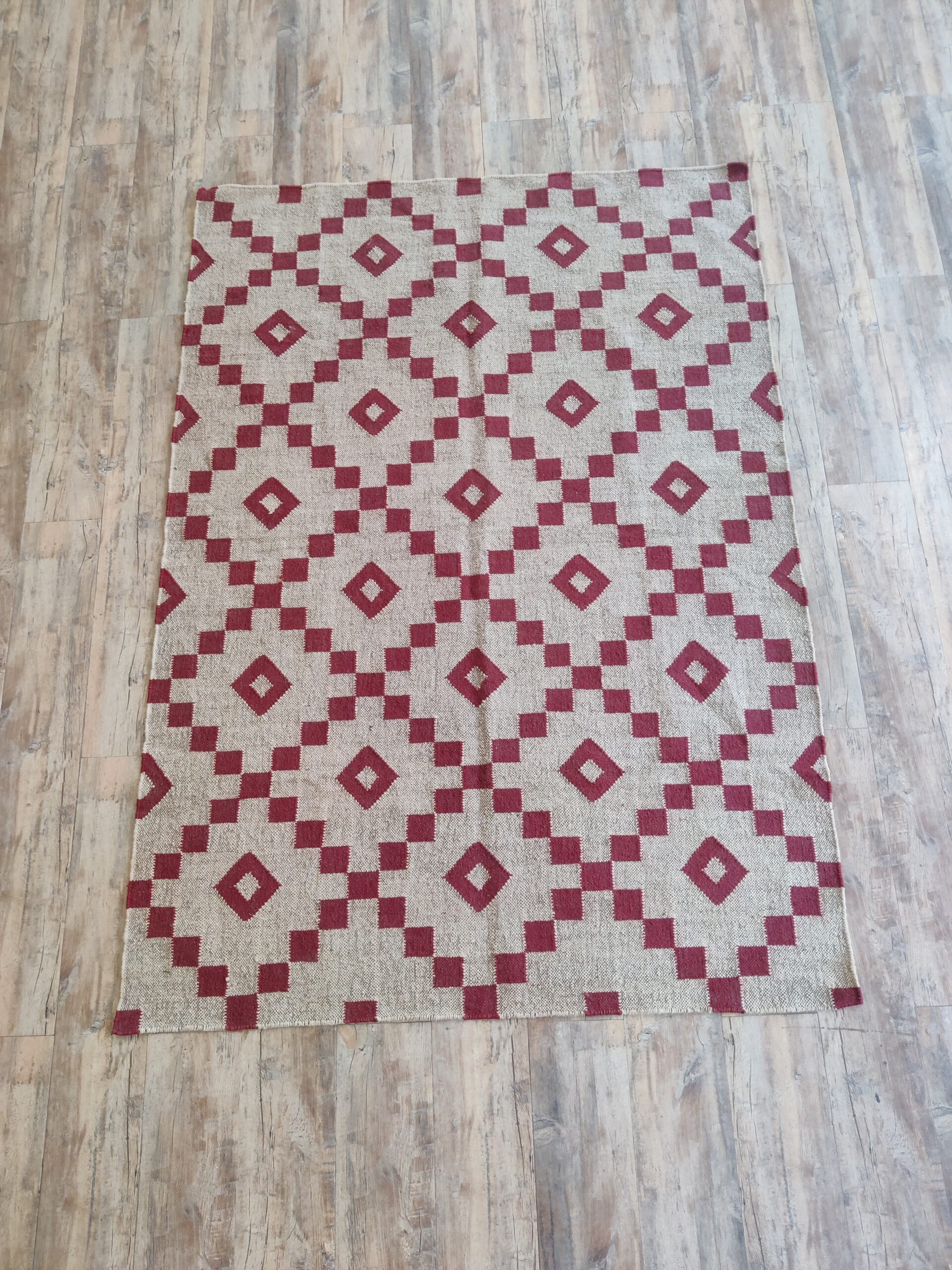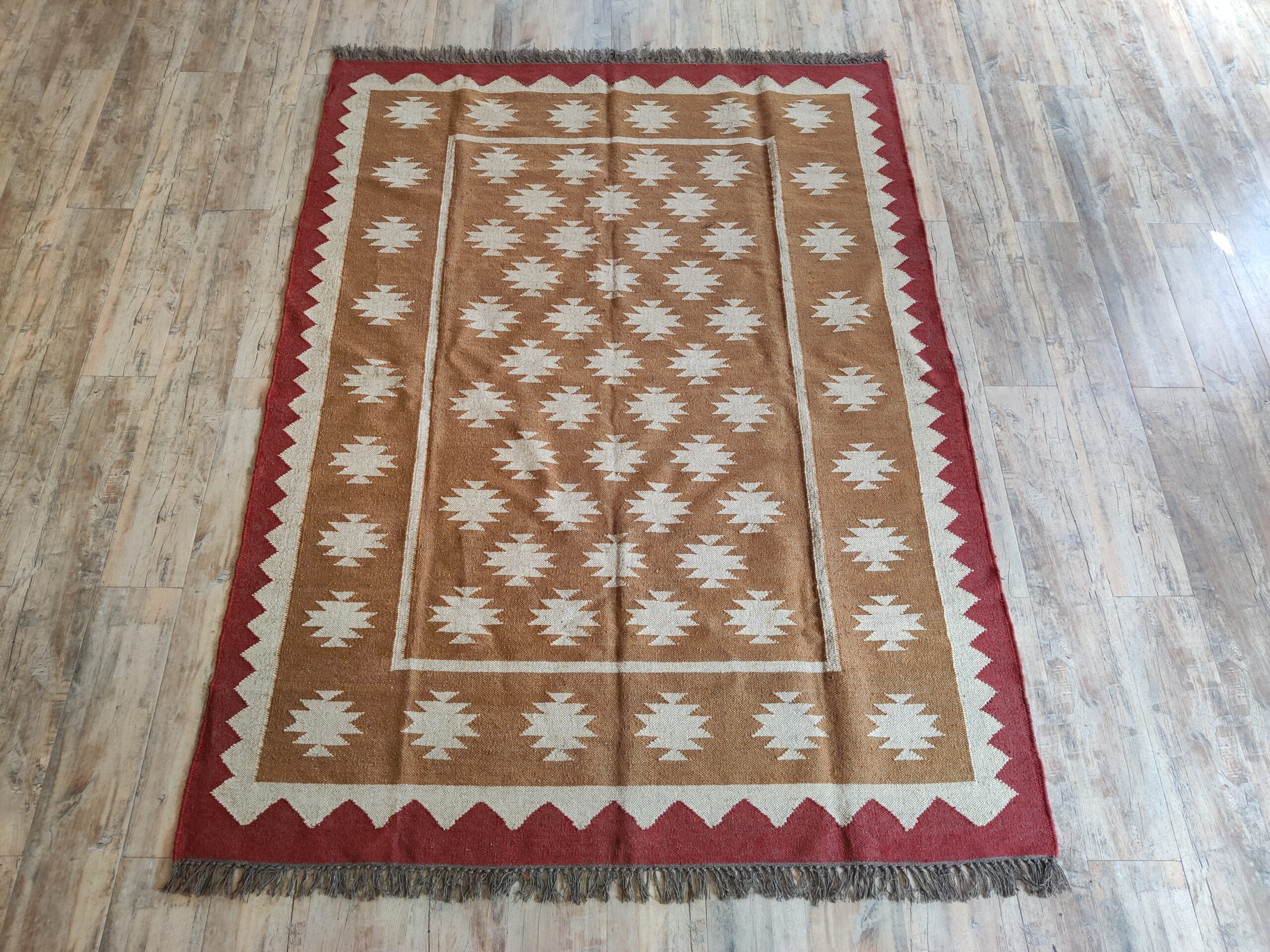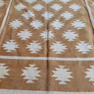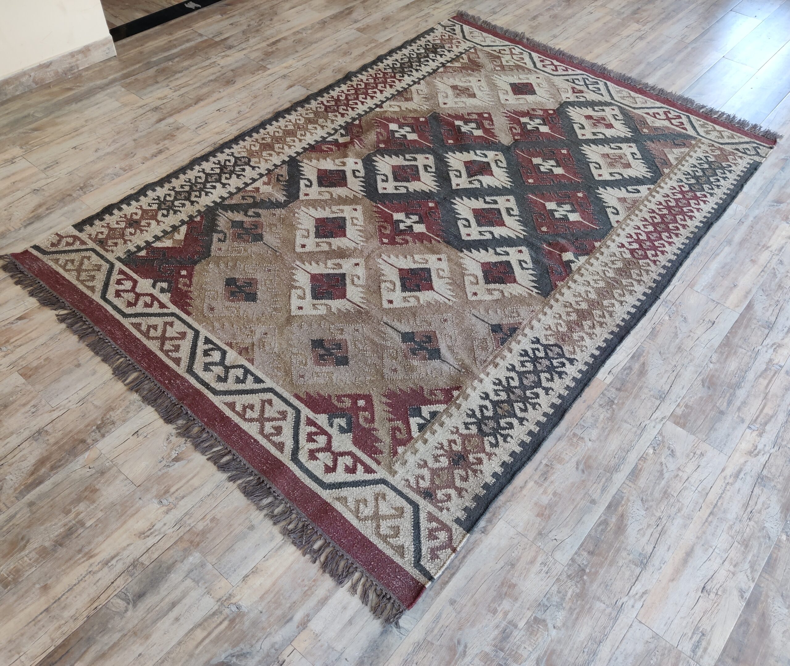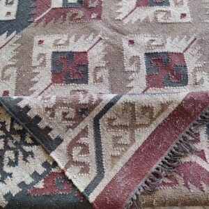 Jute, a durable and eco-friendly fiber, takes center stage in our Jute Kilim Carpet. This natural material lends an earthy sophistication to the rugs, creating a warm and inviting atmosphere in any space. The distinct texture of jute adds depth and character, making these rugs a unique and stylish choice for the eco-conscious homeowner.
