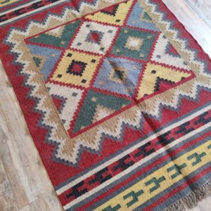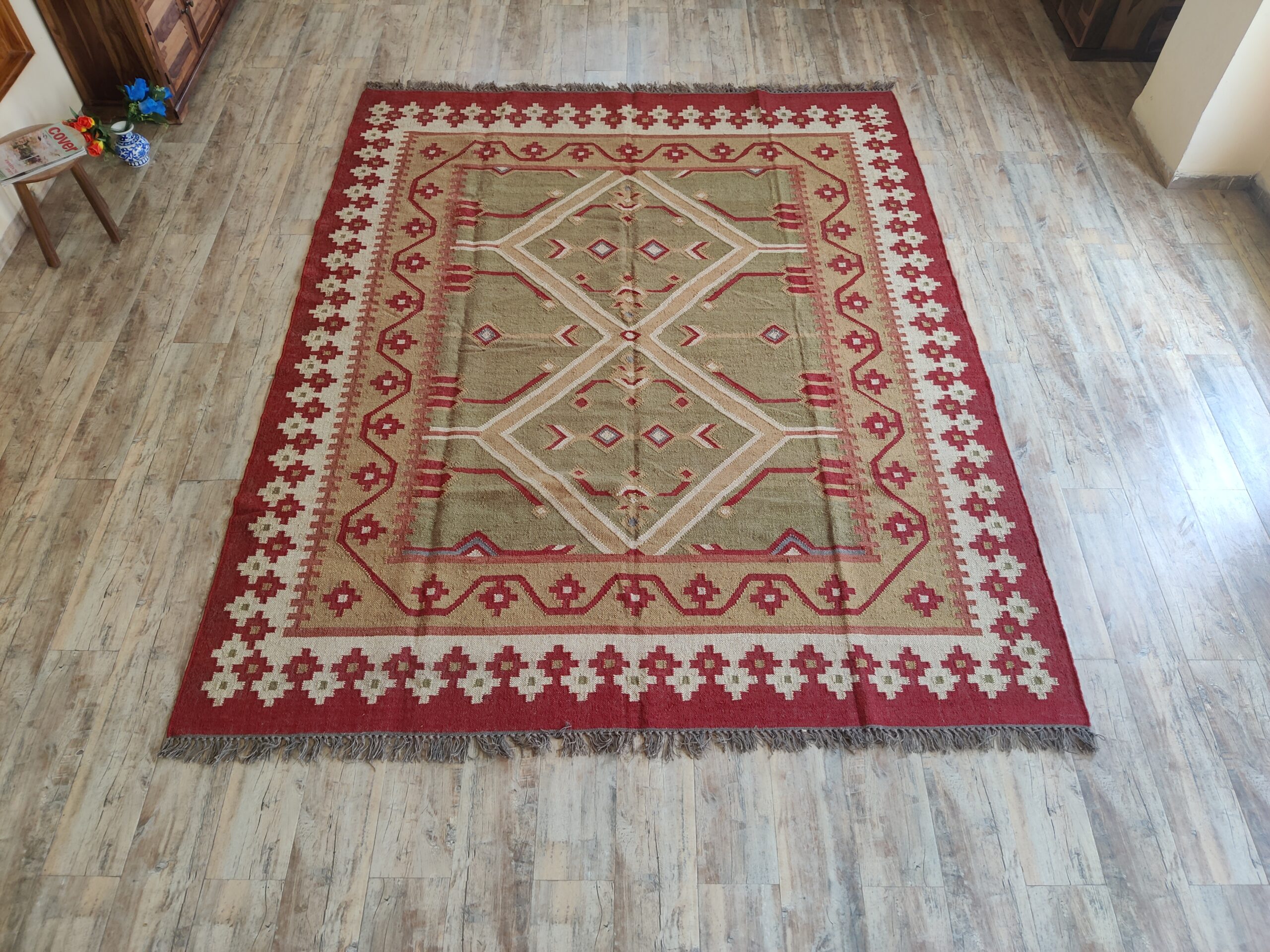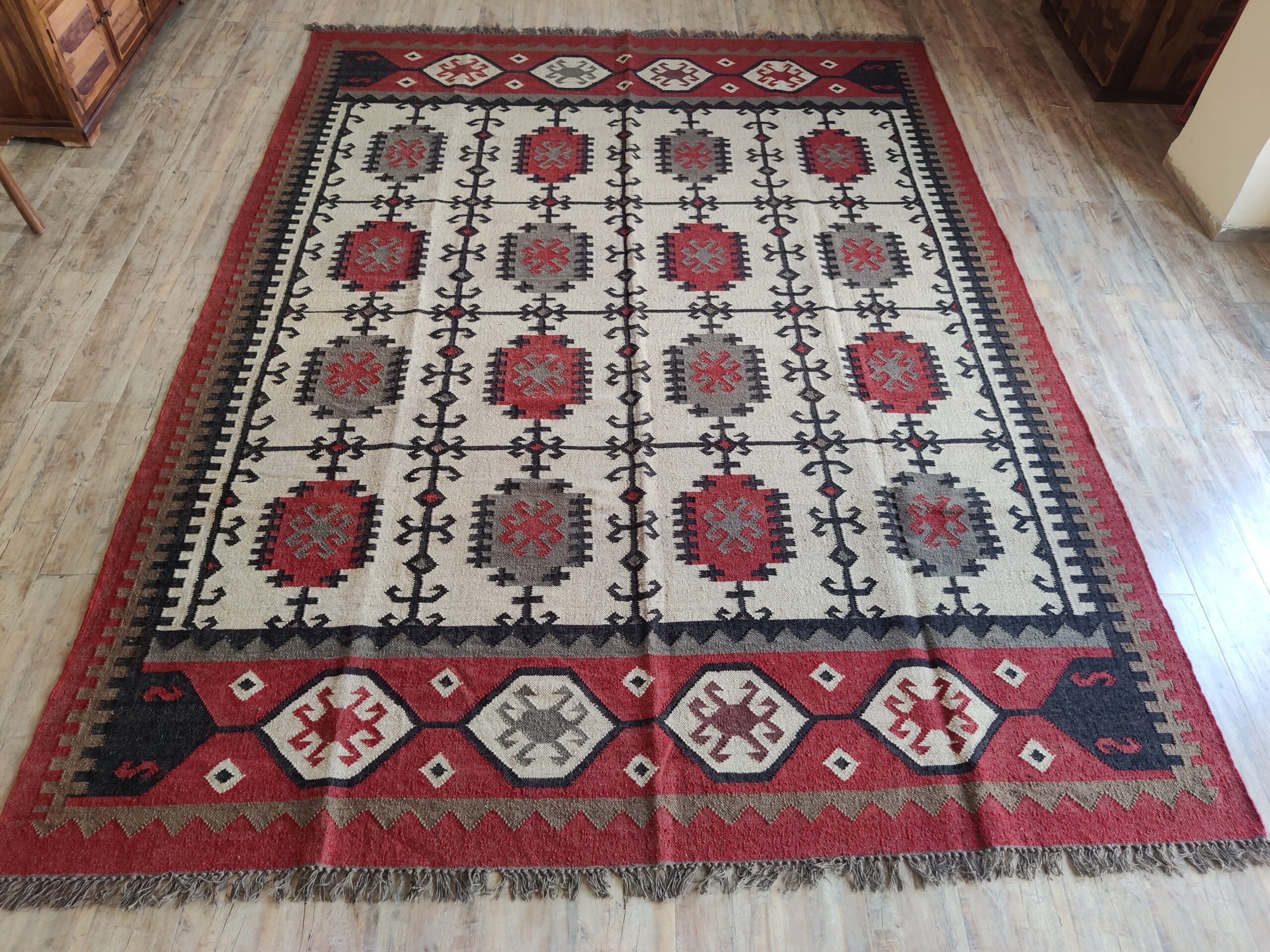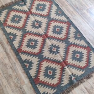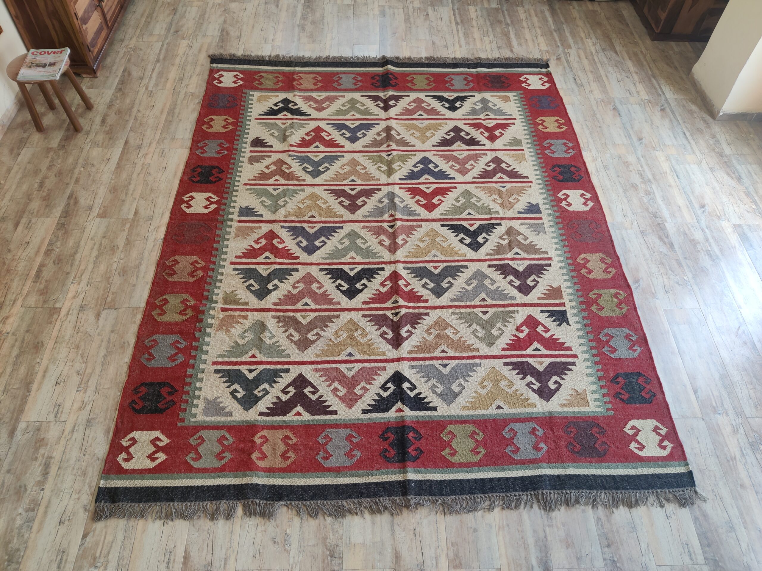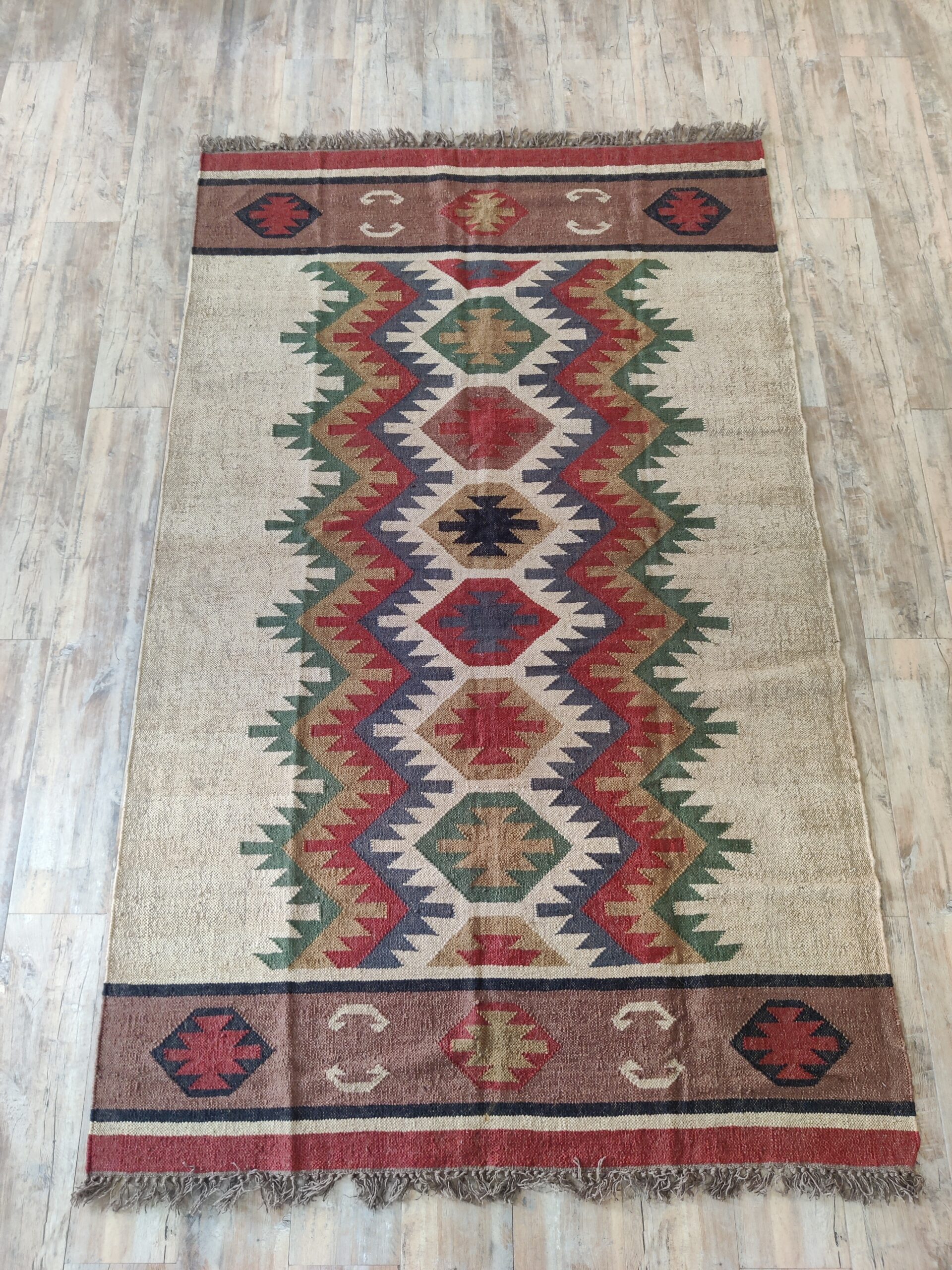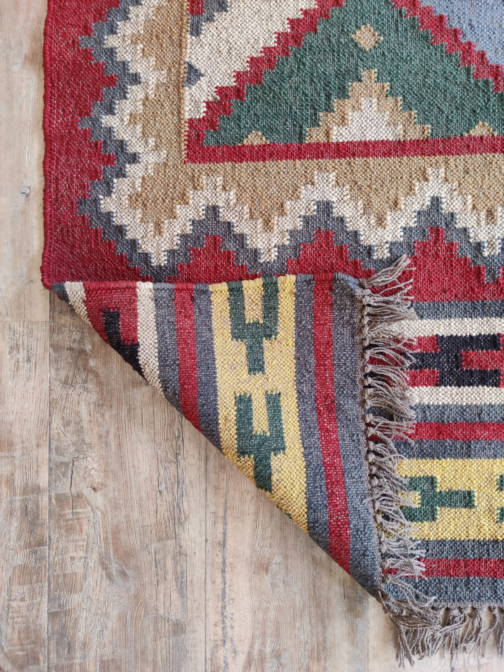 Indian Handmade Multicolor Area Jute Kilim Rug
