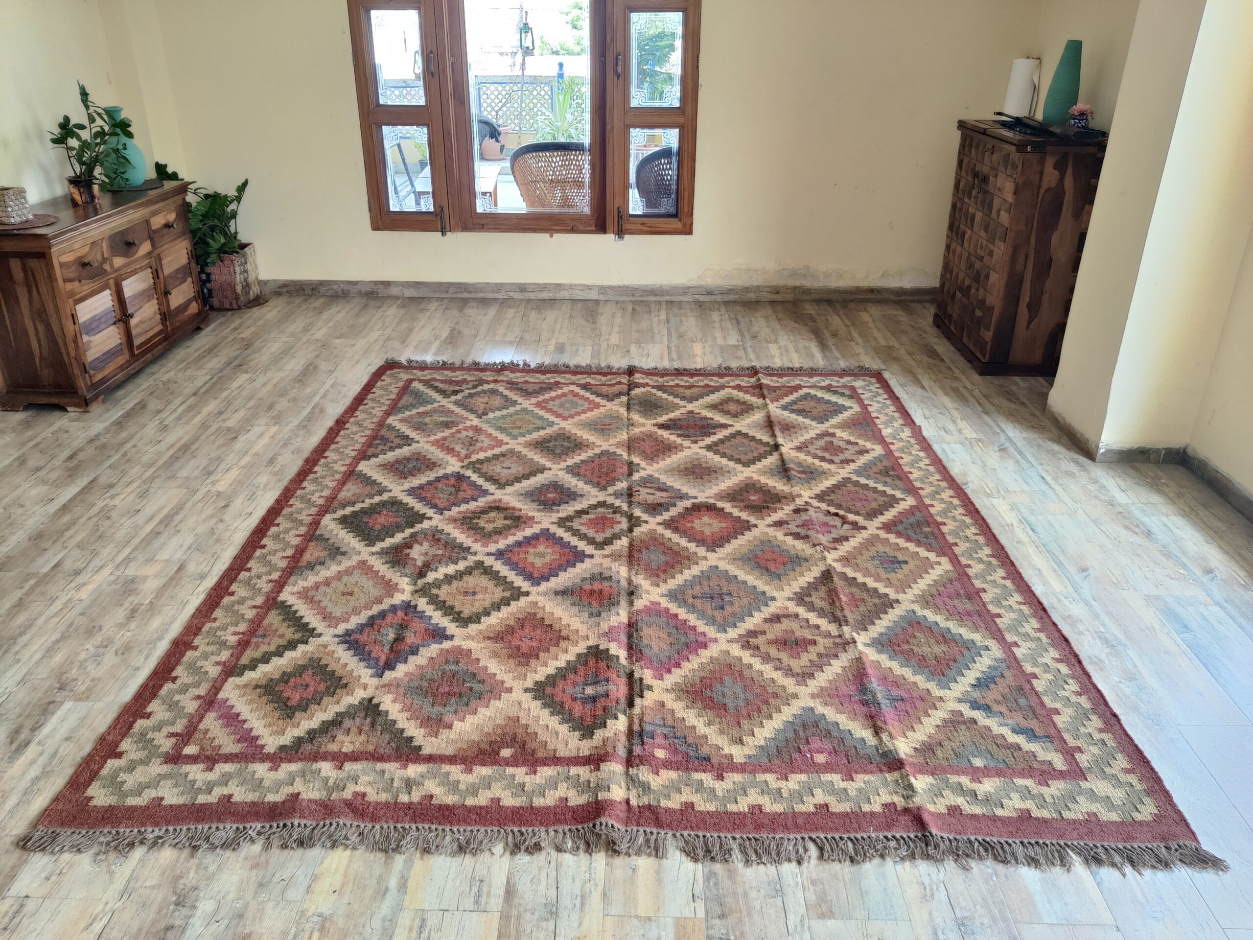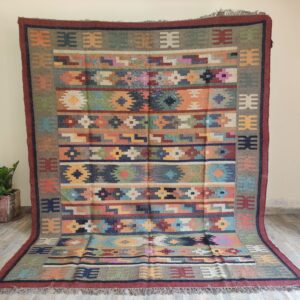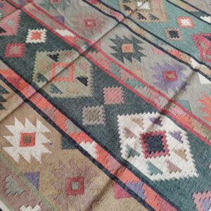 Modern Multicolor Home Decor Living Room Rug, Geometric Pattern Rug, Wool Kilim Rug