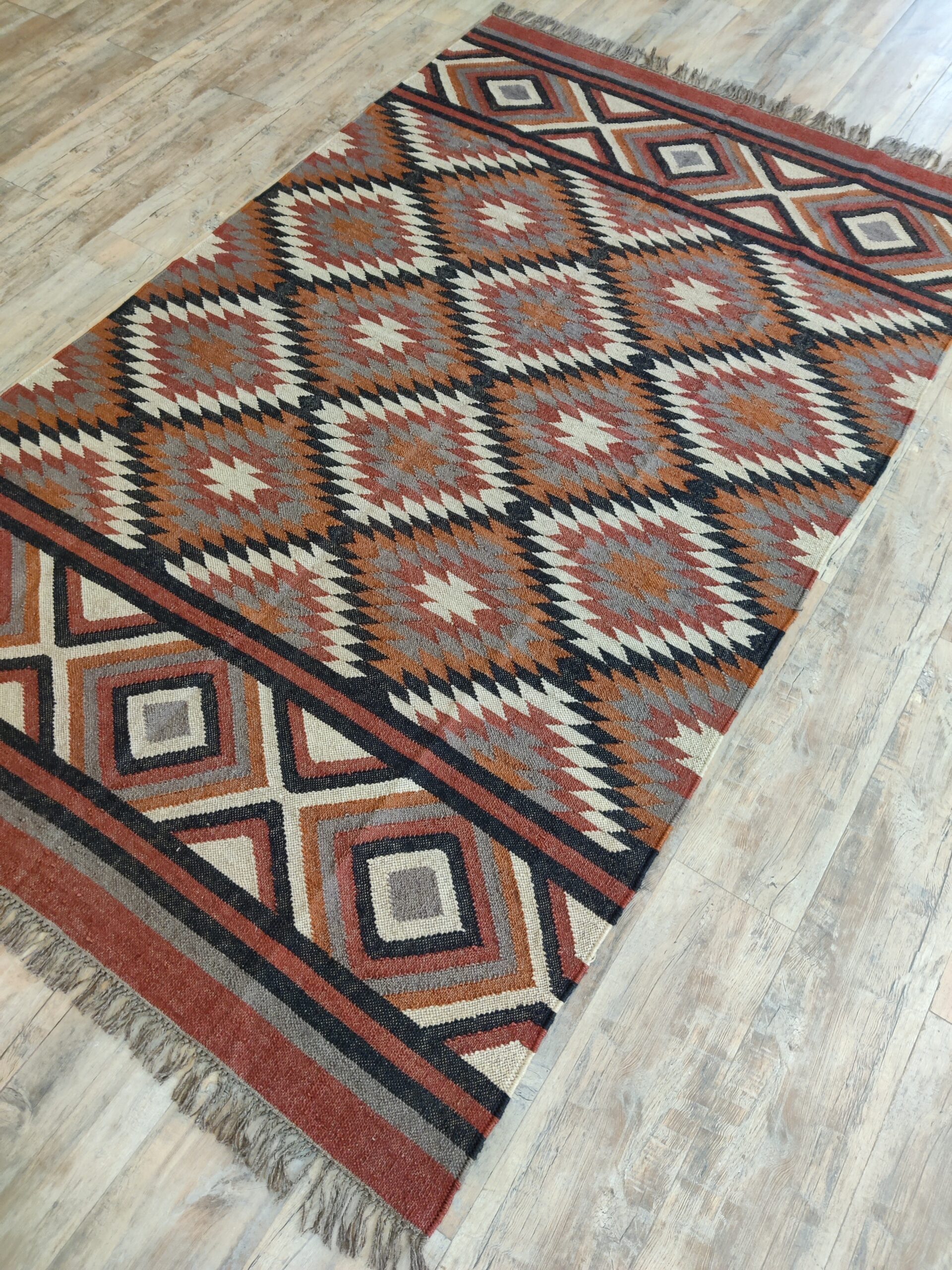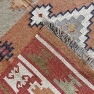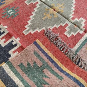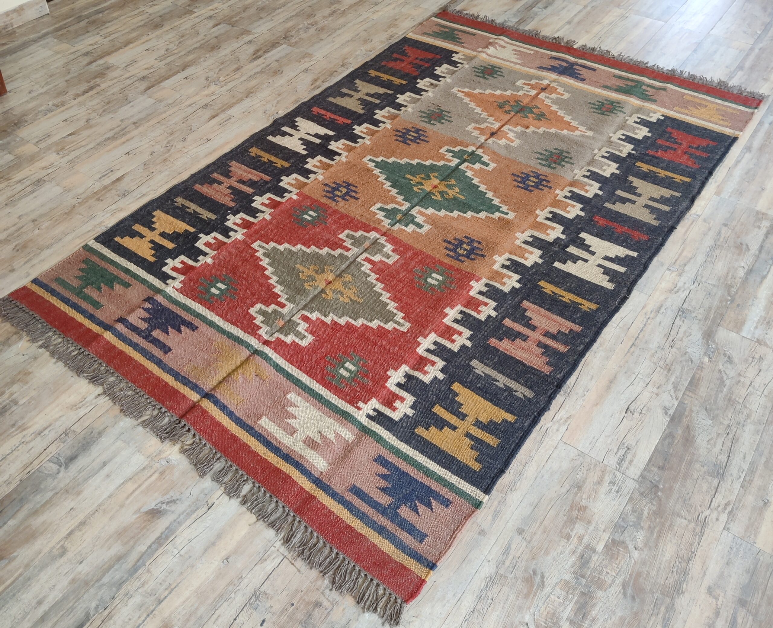 Modern Multicolor Home Decor Living Room Rug, Geometric Pattern Rug, Wool Kilim Rug