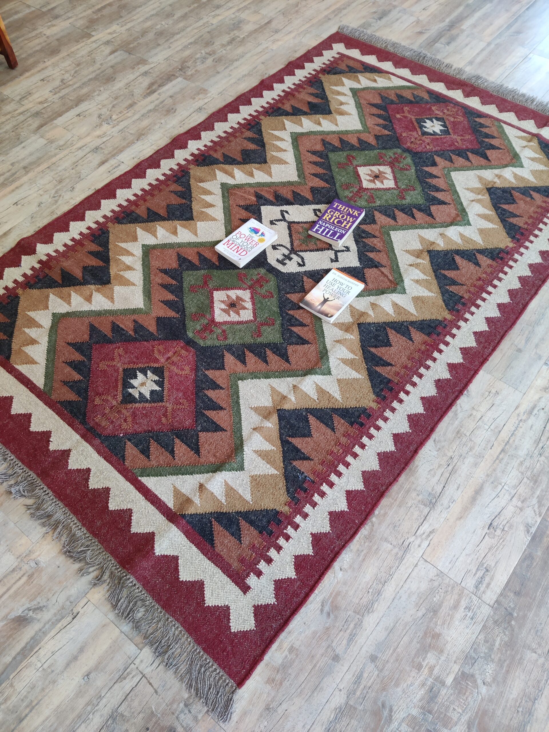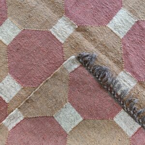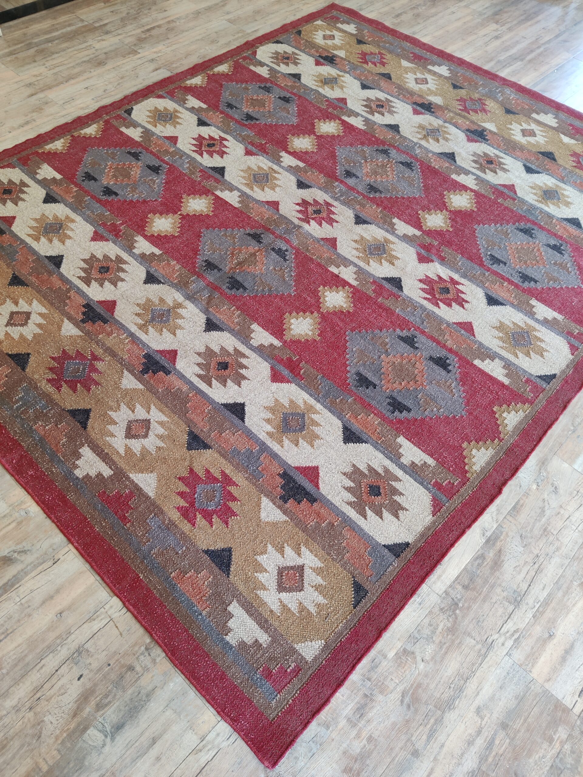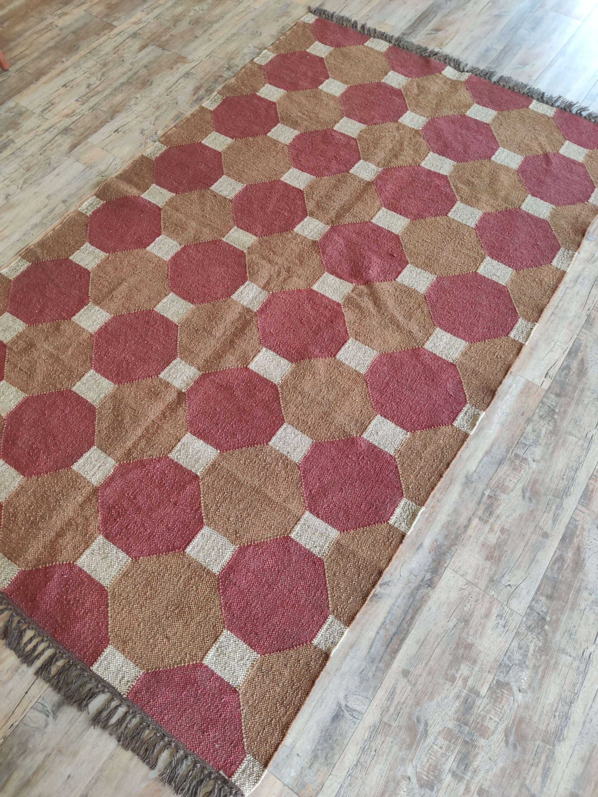 Wool Jute Geometric Pattern Rug, Red And Brown Bedroom, Living Room Rug, Custom Size Rug