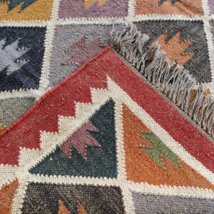 Wool Jute Geometric Pattern Rug, Multicolour Bedroom , Living Room Rug, Custom Size Rug
