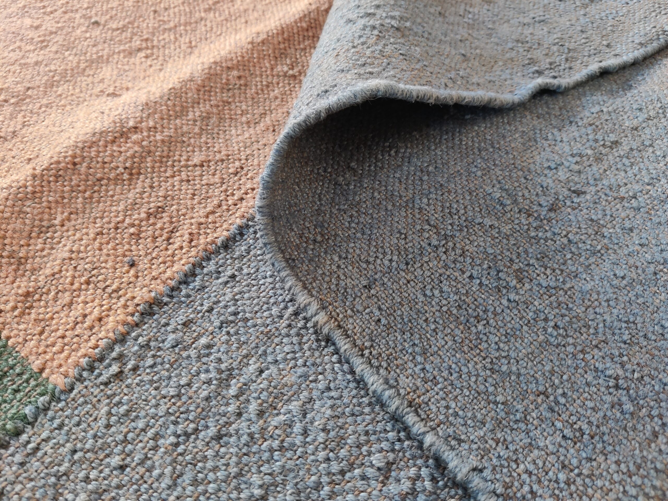 Handmade Wool Jute Kilim Rug: Green Blue Geometric Boho Area Rug