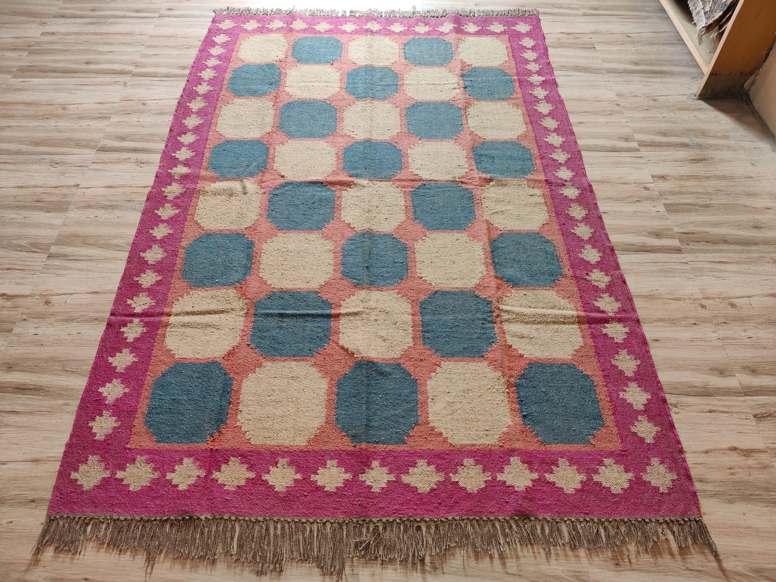 Handwoven Jute Kilims Check Rug, Modern Kilims Designer Rug, Home And Living Room Rug