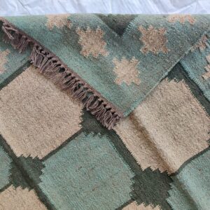 Handwoven Jute Kilim Rug, Green And Blue Wool Jute Rug, Home And Living Room Rug