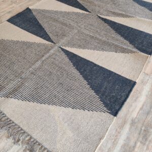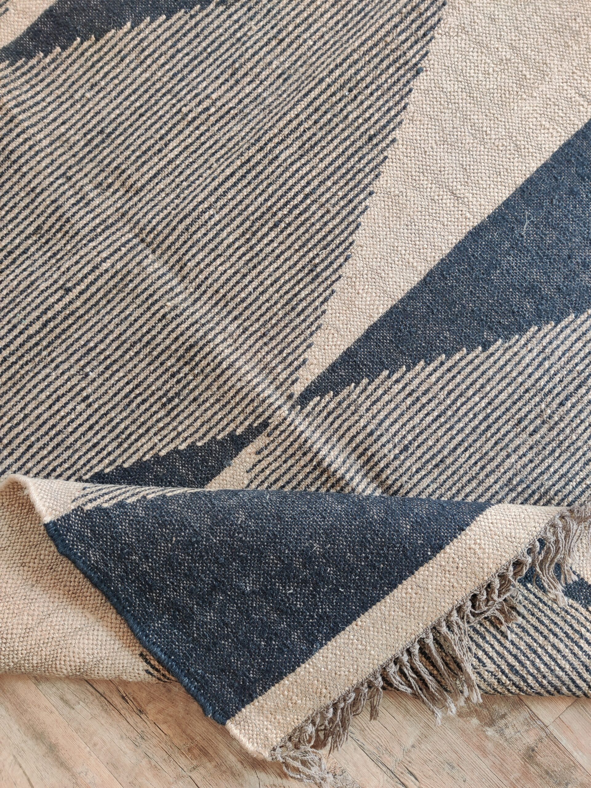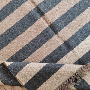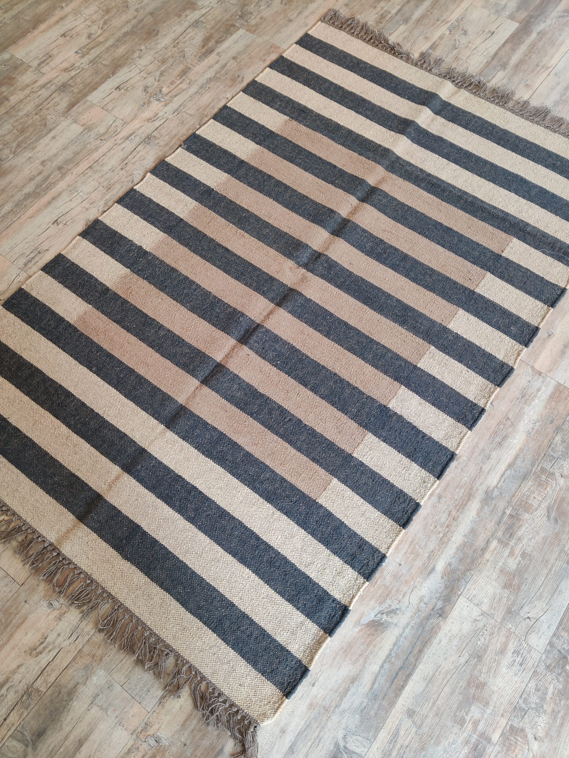 Handwoven Blue And Beige Strips Wool Jute Rug, Home And Living Room Rug