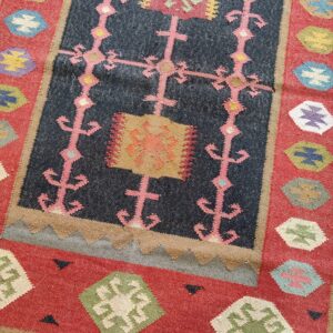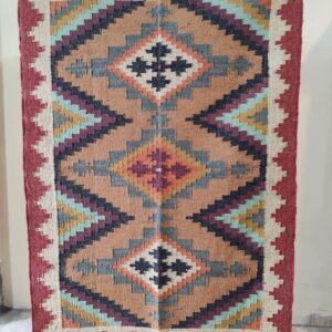 Handwoven Kilim Area Rug: Bohemian Geometric Wool Rug