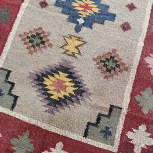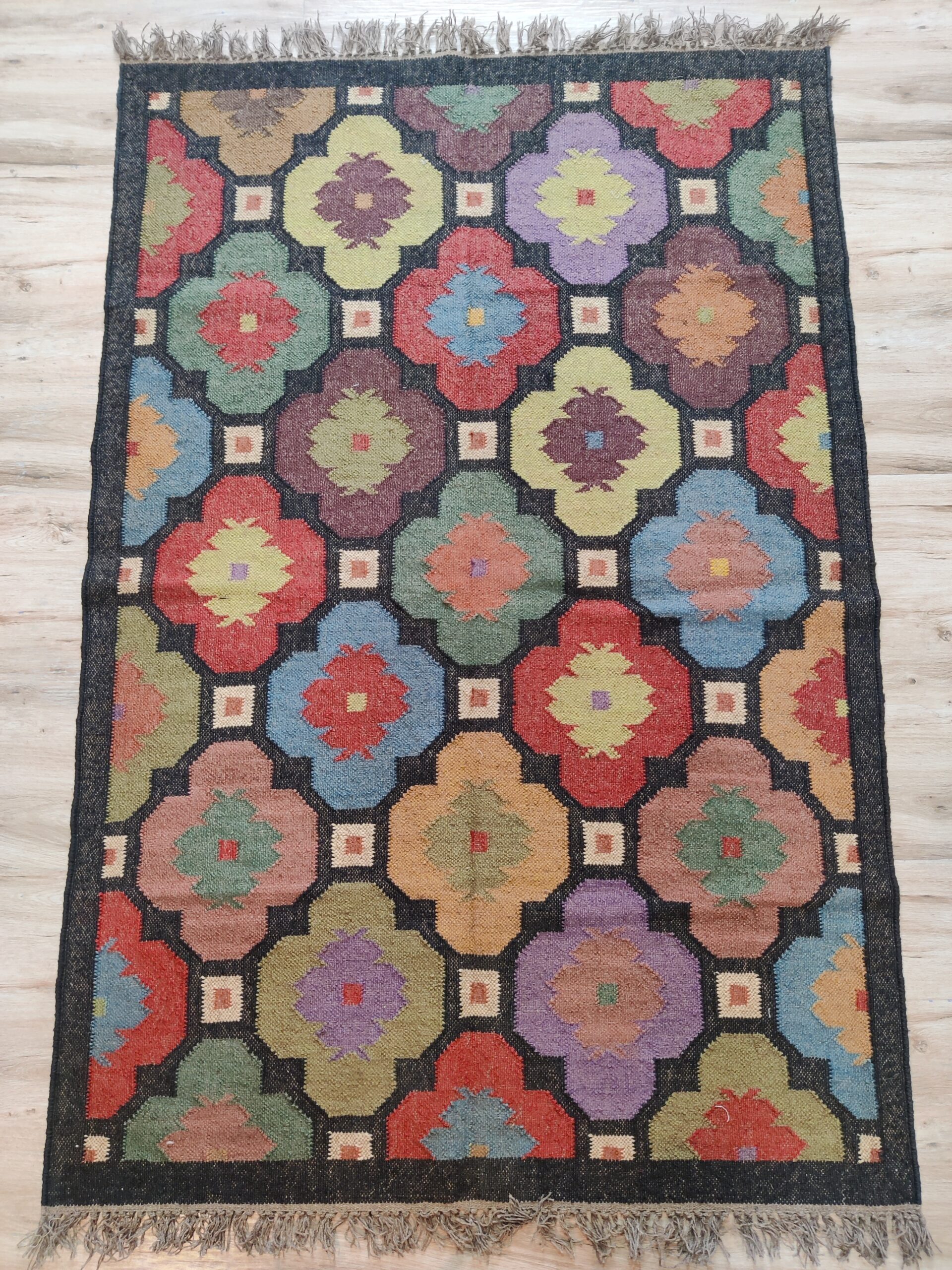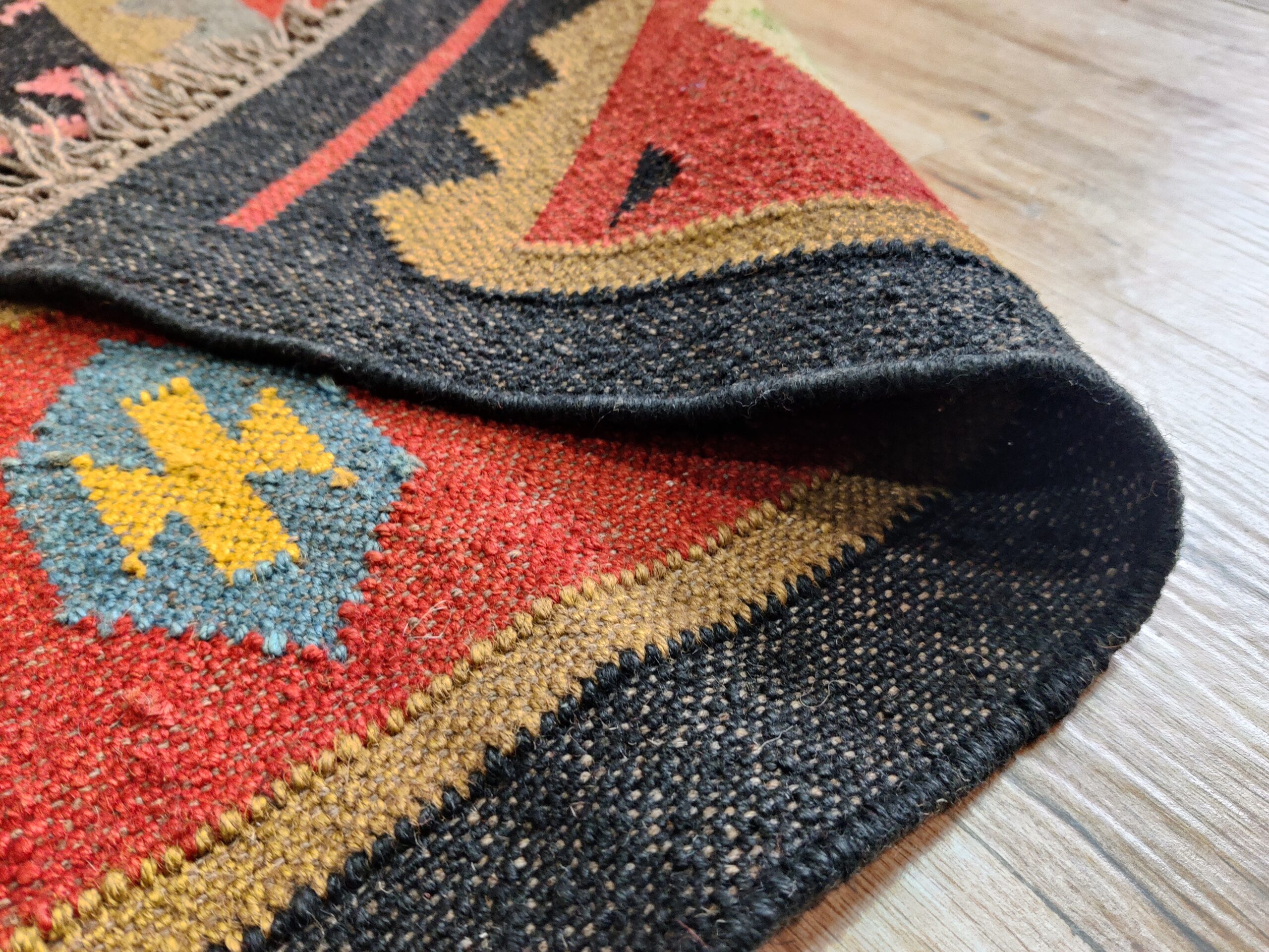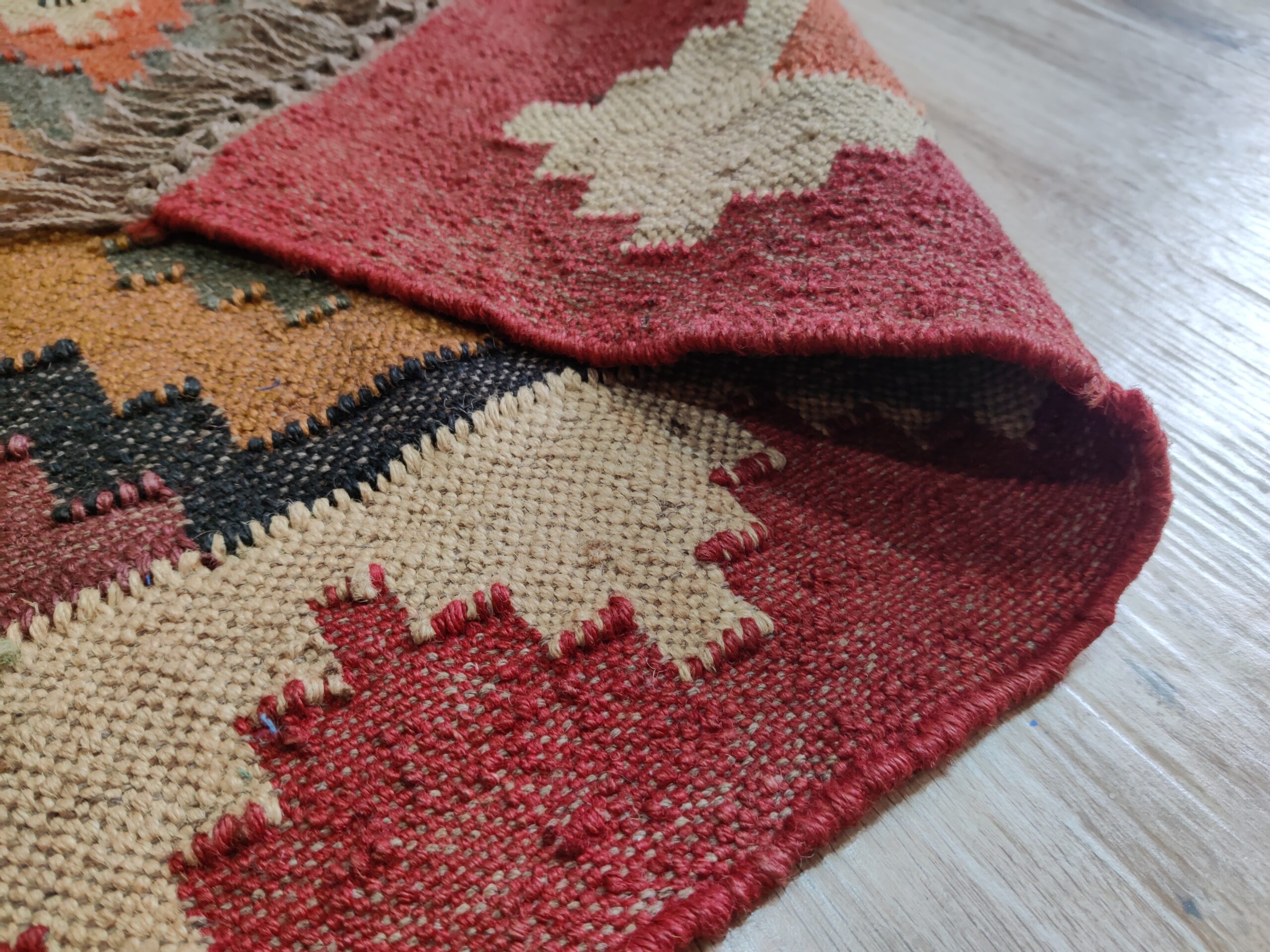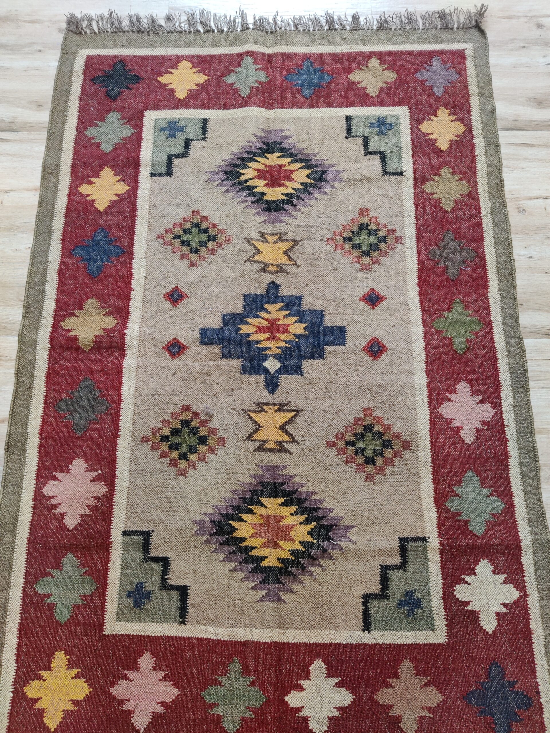 Handwoven Kilim Rug: Wool and Jute Dhurrie, Bohemian Area Rug