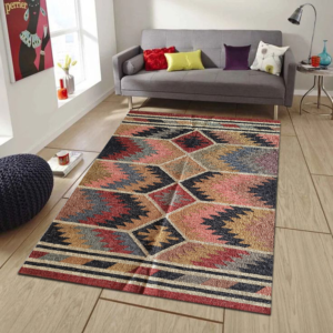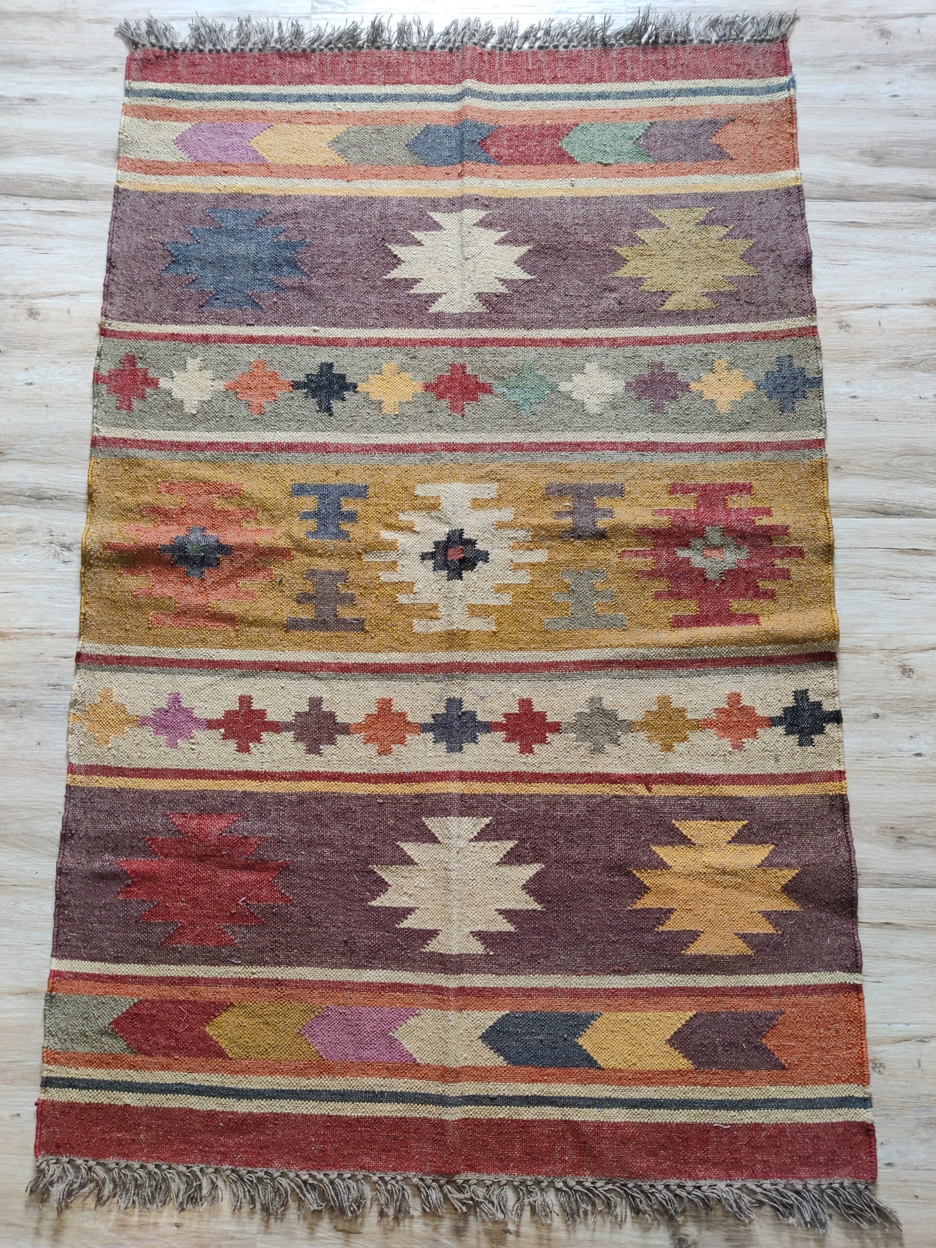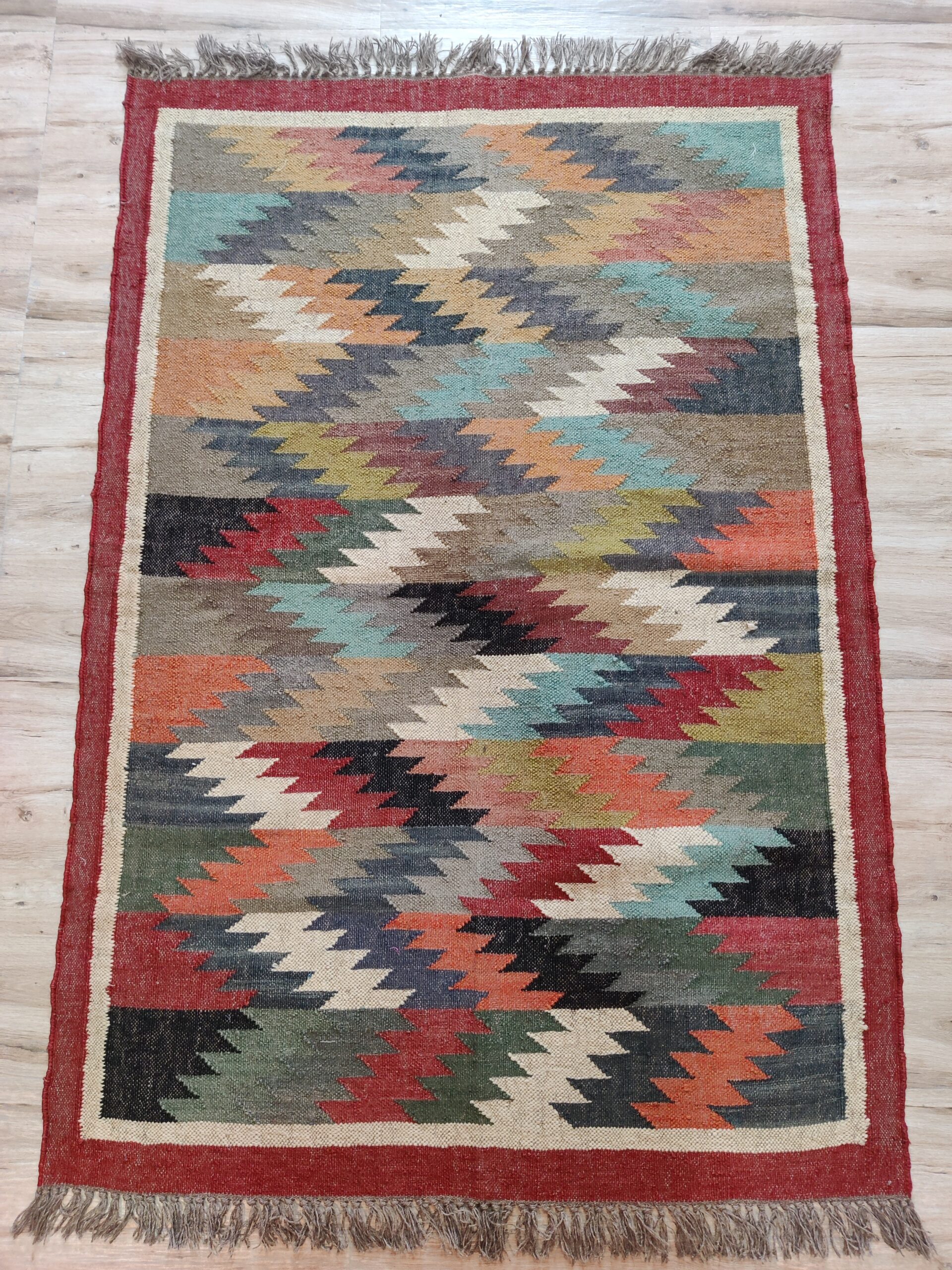 Handwoven Jute Kilims Multicolor Geometric Rug, Home And Living Room Rug