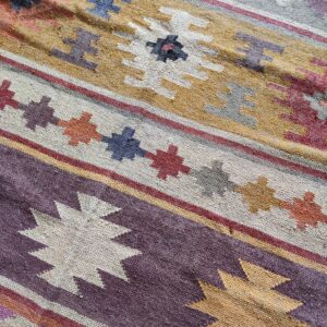 Handwoven Kilim Area Rug: Bohemian Wool Jute Dhurrie (6×9 Rug)