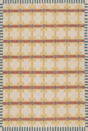 Handmade Cotton Wool Rug, Beige And Yellow Geometric Rug, Blue Strips Wool Kilim Rug
