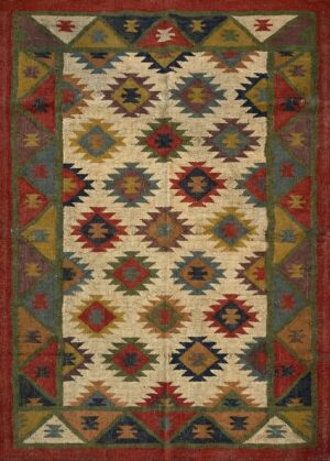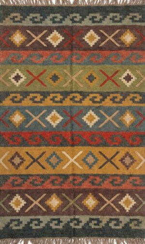 Handmade Wool Jute Traditional Rug, Jute Kilim Geometric Pattern Living Room Rug