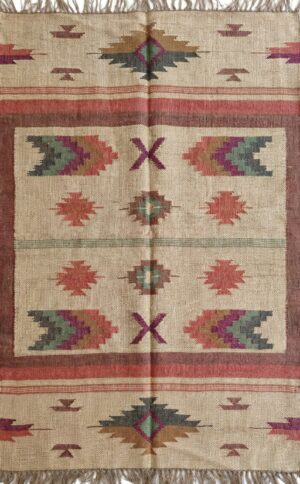 Handwoven Colorful Wool Jute Kilim Rug, Home Decor Rug