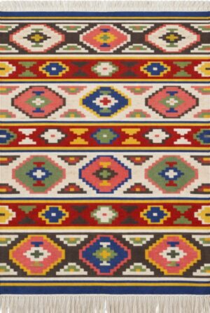 Colorful Area Rug Multicolor Handmade Cotton Wool Rug