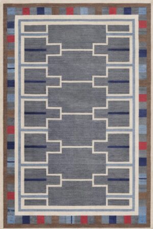 Blue Checkered Wool Handwoven Flatweave Design Rug