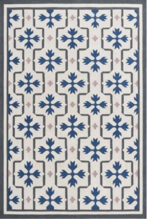 Blue Cotton Wool Dhurrie Rug: Handwoven Geometric Rug