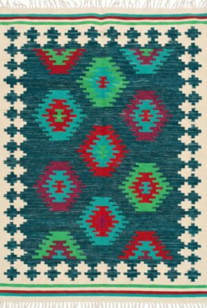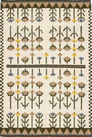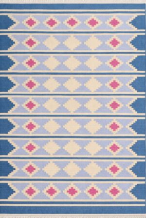 Floral Pattern Modern Designer Rug, Cotton Wool Kilim Rug