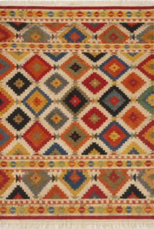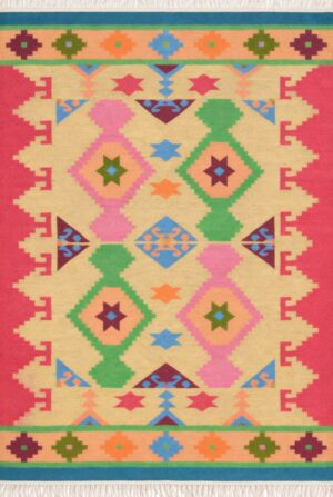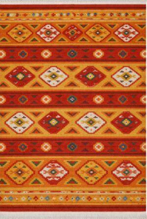 Geometric Orange And Yellow Cotton Wool Area Rug