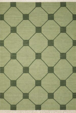 Green And Grey Geometric Pattern Designer Rug, Cotton Wool Kilim Rug