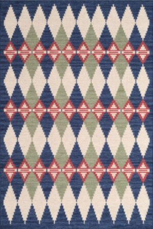 Green And Blue Cotton Wool Kilim Rug, Modern Traditional Design Rug, Home Decor Rug