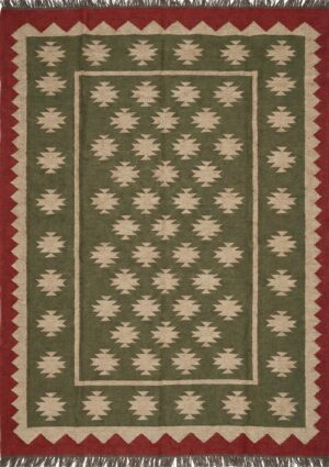 Green And Red Geometric Wool Jute Rug, Home And Living Room Rug, Traditional Wool Jute Rug