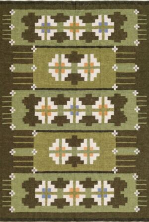 Green And White Home And Living Room Wool Kilim Rug, Geometric Home Decor Rug