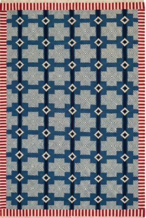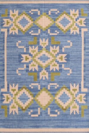 Hamdwoven Cotton Wool Kilim Modern Pattern Design Rug, Blue And White Rug, Reversible Rug