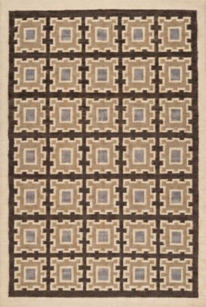 Hamdwoven Traditional Checkered Cotton Wool Kilim Rug, Home And Living Room Rug