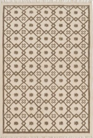 Grey And Beige Geometric Pattern Cotton Wool Kilim Rug, Home Decor Rug, Reversible Rug