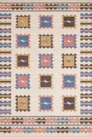 Handwoven Cotton Wool Kilim Rug: Boho Tribal Geometric Home Decor Area Rug