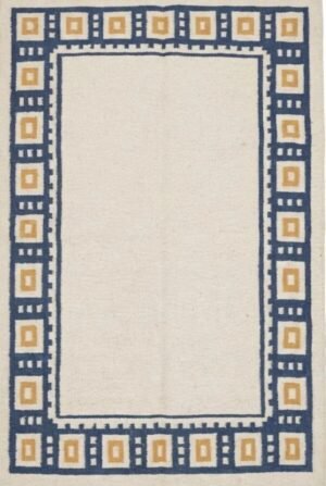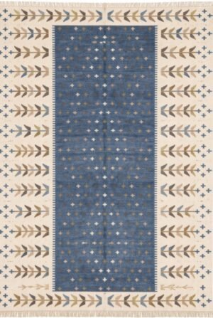 Handwoven Cotton Wool Kilim Rug: Blue White Tribal Boho Decor 9×12