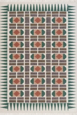 Handwoven Cotton Wool Kilim Rug, Green Geometric Pattern Rug, Home And Living Room Rug