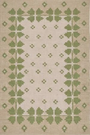 Handwoven Cotton Wool Kilim Rug, Green Floral Designer Rug