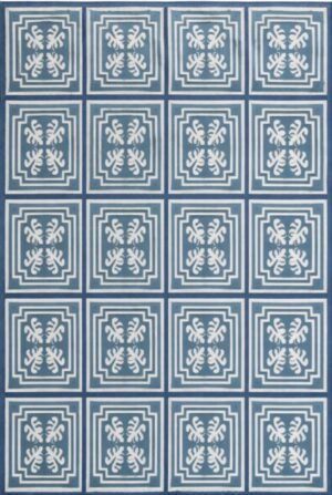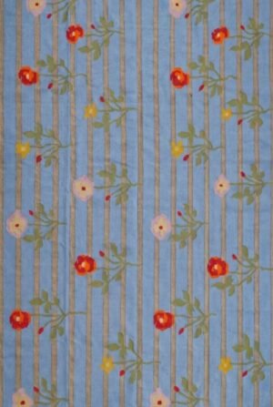 Handwoven Cotton Wool Rug, Beige And Blue Floral Designer Rug, Reversible Custom Size Rug