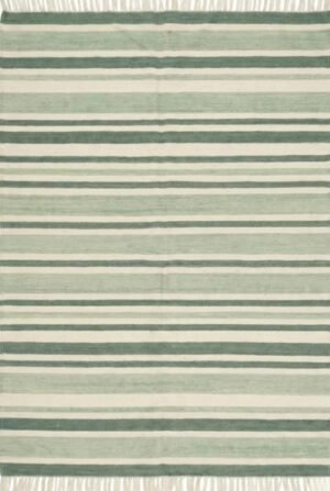Handwoven Cotton Wool Rug, Home Decor Rug, Green And White Strips Wool Kilim Rug