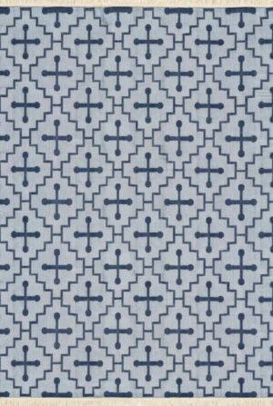 Handwoven Cotton Wool Rug, Blue & White Geometric Dhurrie, Modern Flatweave Area Carpet