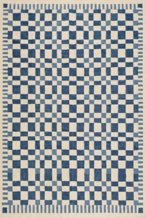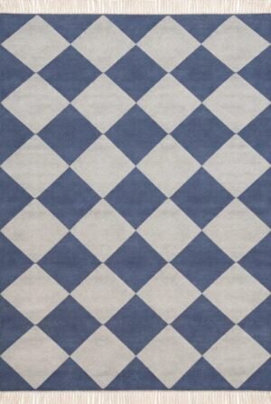 Handwoven Cotton Wool Rug, Home Decor Rug, Blue And White Checkered Rug Living Room