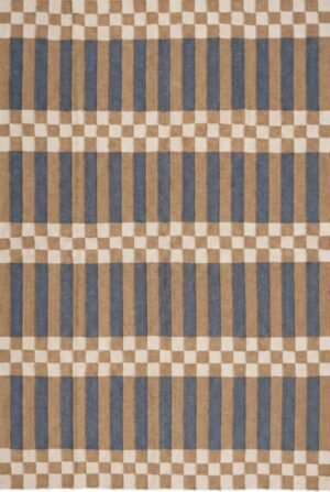 Handwoven Cotton Wool Rug, Brown And Blue White Strips And Checkered Rug, Modern Wool Rug