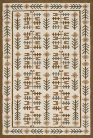 Handwoven Cotton Wool Rug: Beige & Sage Green Geometric Flatweave