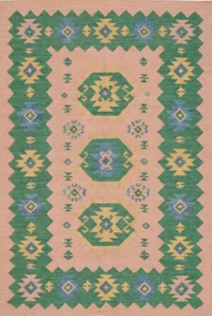 Handwoven Geometric Pattern Green And Blue Home And Living Room Rug, Modern Desinger Rug
