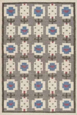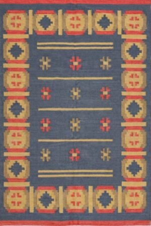 Handwoven Geometric Wool Rug: Mid Century Modern Kilim Style Rug, Home Decor Rug