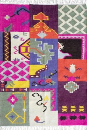 Handwoven Home And Living Room, Bedroom Cotton Wool Kilim Rug