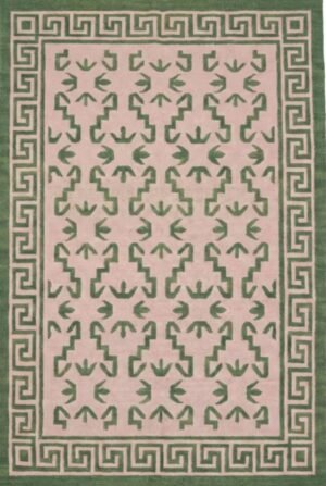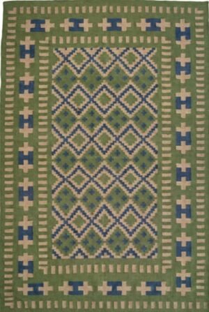 Handwoven Green And White Geometric Pattern Home And Living Room Rug