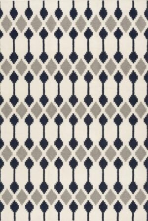 Handwoven Grey And Navy Blue Wool Kiilm Rug, Geometric Pattern Living Room Rug