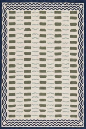 Handwoven Green And White Modern Pattern Designer Rug, Home Decor Living Room