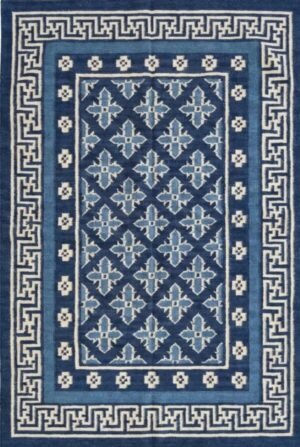 Handwoven Wool Area Rug: Navy Blue Geometric Boho Carpet 5×8